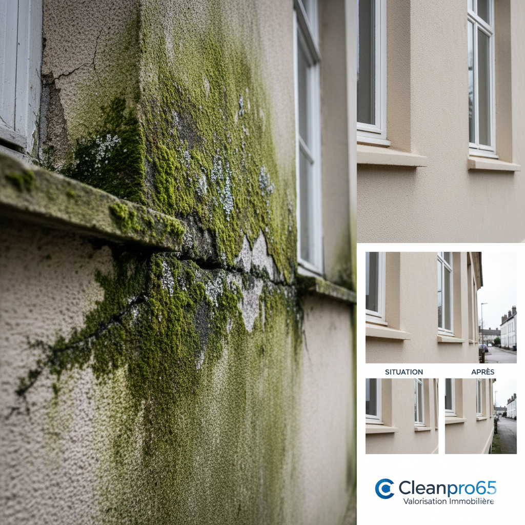 • Prévenir les dégâts structurels : La mousse, le lichen et les algues qui s’incrustent sur votre façade ne sont pas seulement inesthétiques. Ils retiennent l’humidité contre le mur, ce qui peut, à terme, provoquer des infiltrations, des fissures, et même des dommages plus graves au revêtement en cas de gel. Un nettoyage régulier prévient ces dégradations coûteuses.