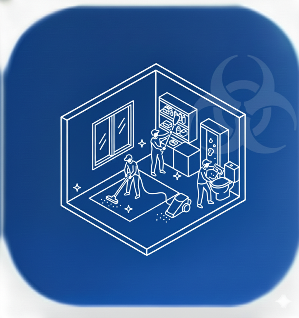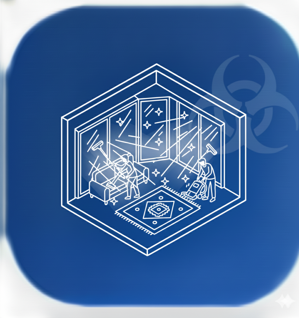 Entretien courant : Dépoussiérage, nettoyage des sols, désinfection des surfaces et sanitaires.